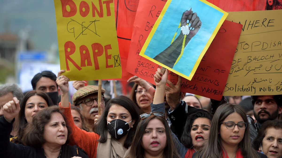 In Islamabad, Pakistan, demonstrators at a rival rally of hardline Islamists attempted to break through a police barrier, hurling objects, including shoes and stones, at women participating in the march.