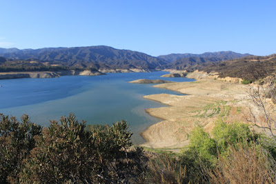 Reservoirs like [Los Angeles adjacent] Castaic Lake [pictured above] and Lake Perris are only about 40 percent of their historical average, according to the state Department of Water Resources. More